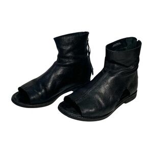 Free People, Ridge Runner Black Bandals, One Part Boot. One part sandal. These leather “bandals” feature a minimal, modern shape, and a back-zip for easy on/off. Gently used, fair condition, with box. Leather, Made in Portugal