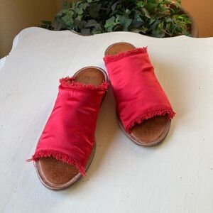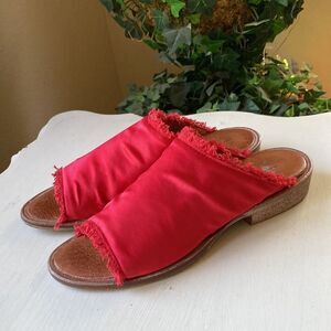 Free People Riley Red Satin Slip On Boho Fringe Detail Sandals Size EUR 37