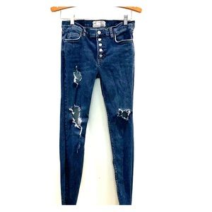 Free People Skinny Jeans size 27 button up closure fringe /raw hem on bottom