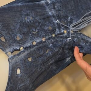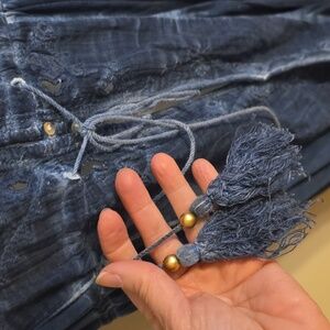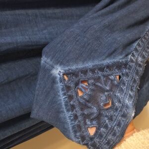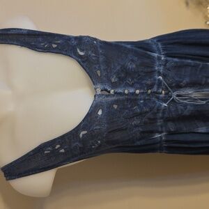 LOVE this duster!! EUC. Burnout style/tie dye look with buttons just top then opens without fasteners on bottom part. Adjustable tie waist. Slight high low hem. Love the embroidery trim and on top, subtle but pretty.