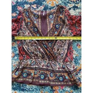 Free People Risalie Smocked Top Size Medium Flutter Sleeve Peasant Boho