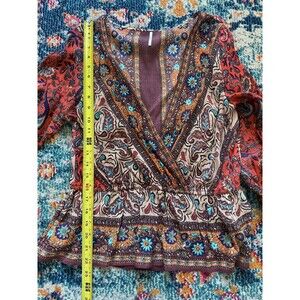 Embrace the bohemian charm with the Free People Risalie Smocked Top, a delightful addition to any wardrobe. The peasant-inspired design, coupled with the playful floral pattern, makes it an ideal choice for both casual outings and cocktail parties. Crafted in a soft, breathable viscose material, this medium-sized blouse ensures comfort and style go hand-in-hand. Featuring a flattering V-neck and elegant long flutter sleeves, the top offers a regular fit that complements the feminine silhouette. The pullover closure allows for easy wear, making it a convenient and stylish option for any occasion that calls for a touch of whimsy and flair.