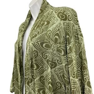Free People Riviera Moss Green Print Open Kimono Long Jacket NWT Boho sz ALL OS