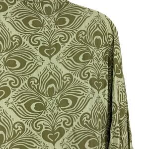 The Free People Riviera Moss Green Print Open Kimono Long Jacket in Boho style is a versatile and stylish outerwear piece perfect for various occasions like travel, parties, or casual wear. Made from rayon with a geometric green pattern, this jacket features a long length and long sleeves for comfort and style. The open closure and one size fit make it easy to throw on for a trendy and effortlessly chic look. Ideal for the summer, fall, and spring seasons, this jacket is a must-have addition to any woman's wardrobe.
