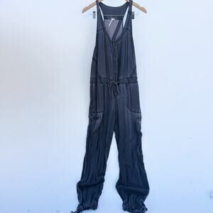 Free People Roaring Rayon Utilitarian Jumpsuit Backless Cut-Out Gray Grey 10