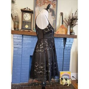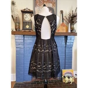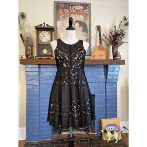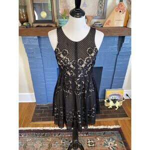 Free People Rocco Dress Black Lace Overlay Sleeveless Open Back Sz 4 Mini Sheer