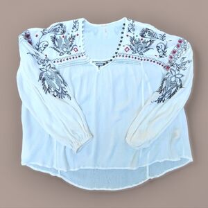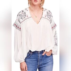 Free People Rock It Tonight Embroidered White Blouse, Size S