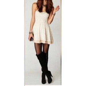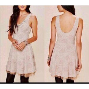 Free People Rock Princess Jacquard Fit and Flare Mini Dress Sz XS Womens Cream T