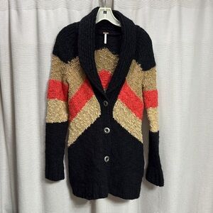 Free People Rocket High Boyfriend Cardigan Black Combo M nubby Aztec coatigan