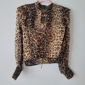 Free People Roma Blouse Leo Small Leopard Print Fall Bohemian Grunge Whimigoth