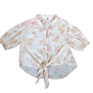 Get ready for spring in this adorable, romantic, puff sleeve, cottagecore, prairie, cowgirl chic, fairy, puff sleeve top with button front and tie waist, by Free People. Pair with your favorite shorts, skirt, or jeans for a casual, trendy, YOU vibe!