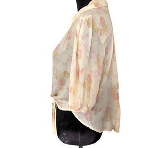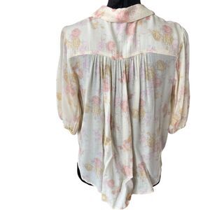 Free People Romantic Feminine 100% Rayon Boho Cottagecore Puff Sleeve Blouse S