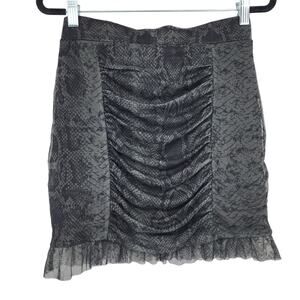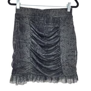 Free People Romi Mesh Fabrication Ruching Green Animal Mini Skirt Size Small