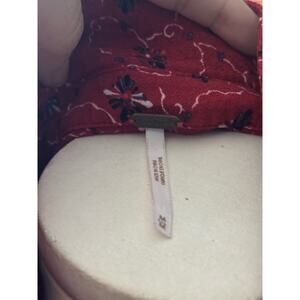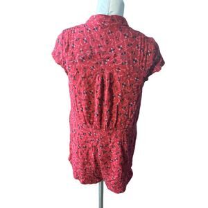 Free People red romper size M. Dark red floral pattern. Great pleating and crochet details. metal sturdy buttons.