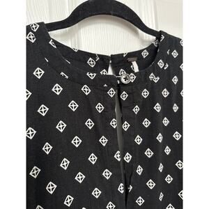 Free People Romper Ashley Black White Diamond Boxy Linen Blend XS