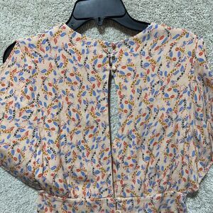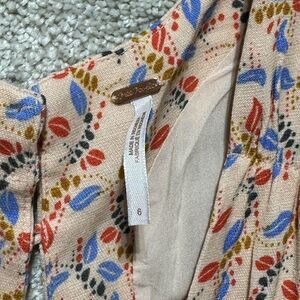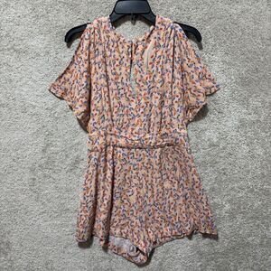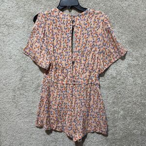 Free People Romper Women's 6 Peach Printed Short One Piece Split Sleeve Playsuit