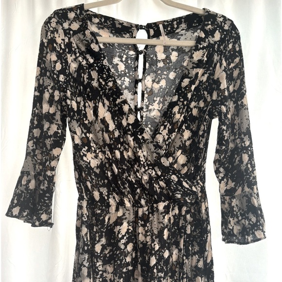 Preloved FP Romper with ruffle shorts. Ties in front, Beautiful button detail in back!