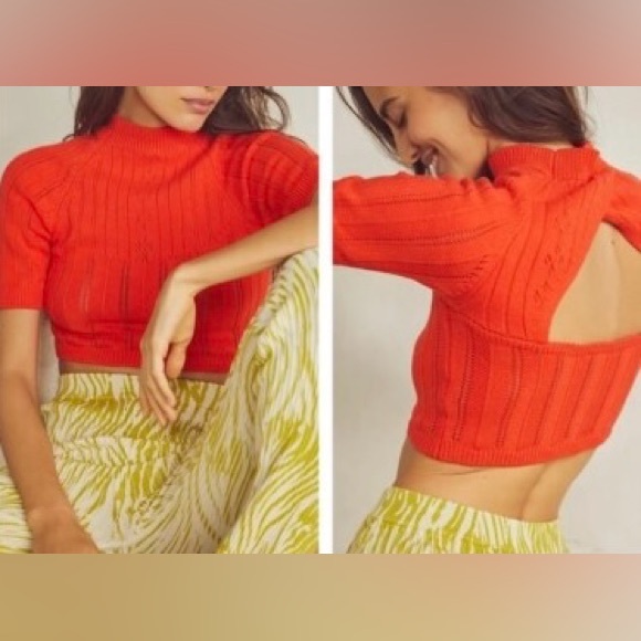 So classic and versatile, this sweater-knit style features a mockneck design and cropped silhouette with pointelle stitching throughout for added dimension.