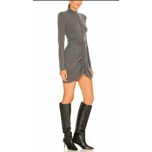 Tags: Free People, Ronny Kobo McCall, Mini Dress, Wool Blend, Ruched, Padded Shoulders, Smoke, Knit Dress