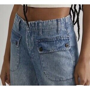Free People Rory Slim Straight Jeans Wo's 30 Tab Cuff Hems Seamed Button Pockets