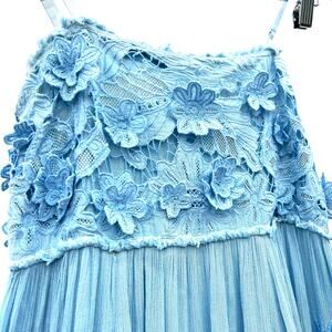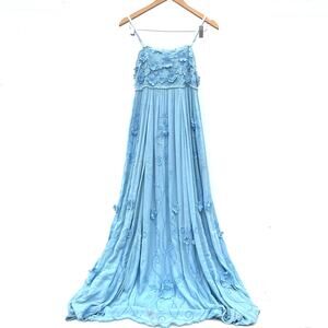 Free People Rosa Maxi Dress Baby Blue 3D Flowers Strapless Fairy XS Small