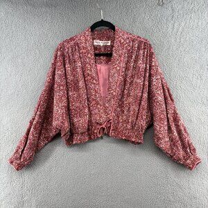 Free People Rosalina Jacket Mocha Combo Printed Dolman Sleeve Size Small