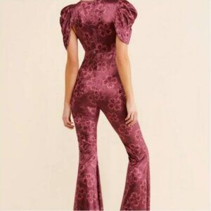 Free People Rosaline velvet floral print Jumpsuit size Medium