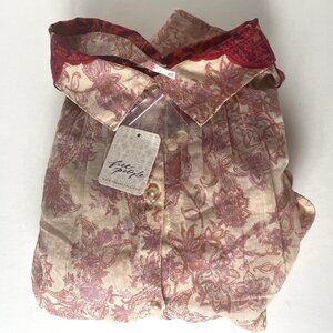 Free People Rose Bud Paisley Cotton Oversized Boho Blouse Red Cream Lightweight