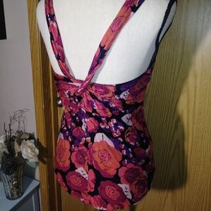 Size XS - appx. 28" bust with lots of stretch (mannequin is appx. 32" bust), 22" length