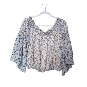 Free People Rose Valley Off Shoulder Peasant Boho Blouse Women's S White Cottagecore
