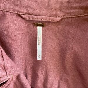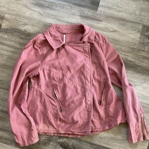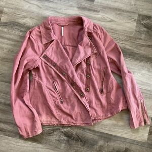 Free People Rosewood Linen Moto Style Jacket Zipper Pockets Snap Close M