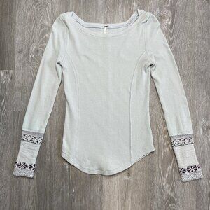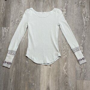 Free People Rosey Seaspray Waffle Embellished Cuff Thermal Top Women's Medium