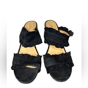 Free People Rosie Ruffle Black Suede Heels Size 39 (8.5) Block Heel