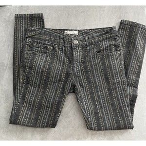 Free People Rotary Geo Stripe Ankle Crop Skinny Jean Black Combo Size 25