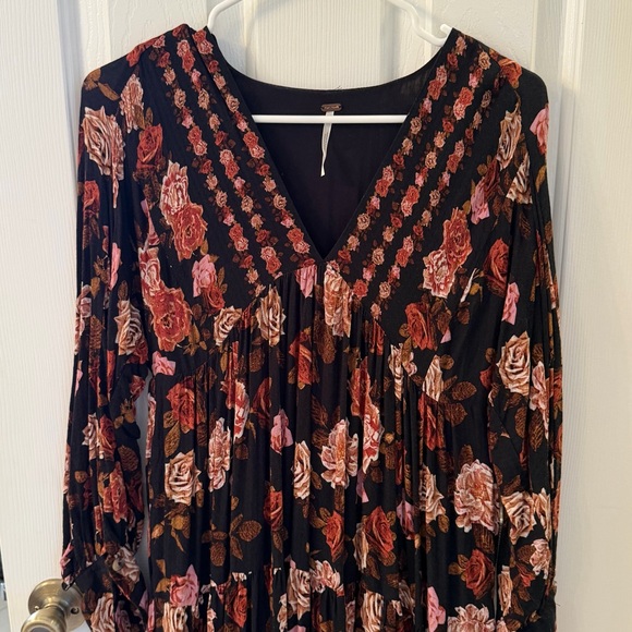Chic V-neck dress with vibrant floral pattern. Perfect for any occasion.