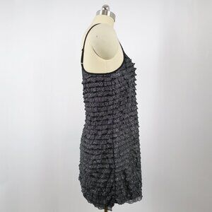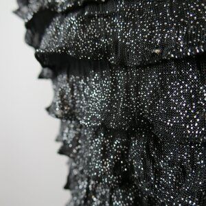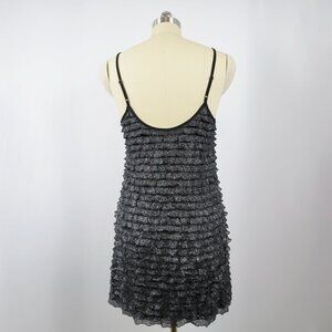 Free People Rows of Ruffles Dress Black Glitter Cascade Ruffle Slip Dress M NWOT