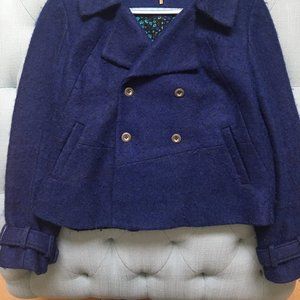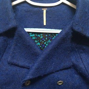 Free People Royal Blue Fuzzy Wool Blend Pea Coat