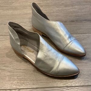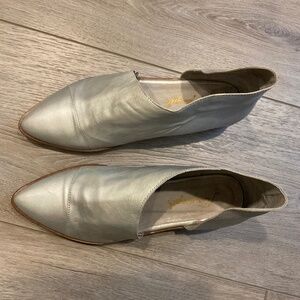 Closed toe version of FP fave Mont Blanc Sandal, these leather flats are made with the finest Spanish craftsmanship. Leather flats feature side cutouts and a slight stacked heel.