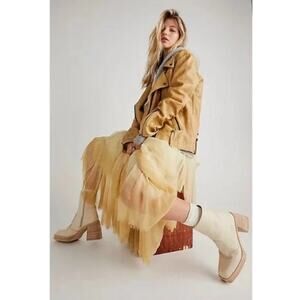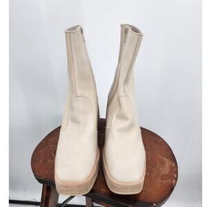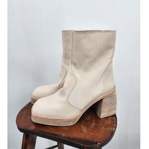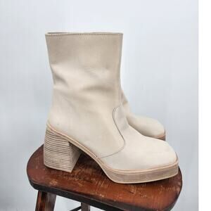 Free People Ruby Bone Off White Square Toe Ankle Block Heel Bootie Size 39.5 9.5