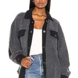 Gently used. Cute patch pockets. Very oversized and comfortable. Chic utility jacket with button-up front. Features contrasting black details. Ideal for layering.