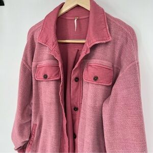 Free People Ruby Jacket Pink Oversized Distressed Elbow Patches Comfy