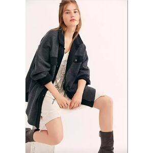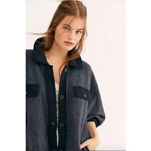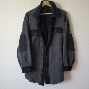 Free people women's jacket size small shirt jacket fleece sweatshirt material gray black pockets button-down super heavy high quality ob1034245 cotton viscose polyester. Excellent.