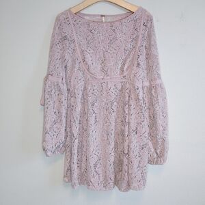 Free People Ruby Mauve Crochet Lace Boho Victorian Mini Dress Sz XS Fairycore