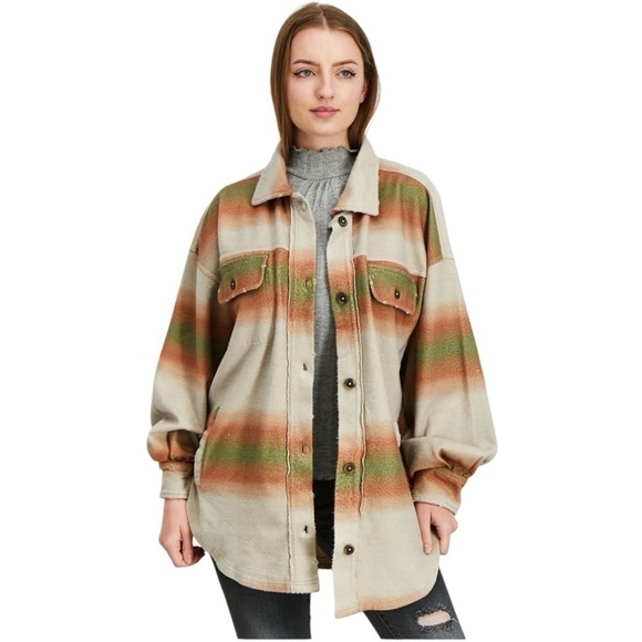 Free People Ruby Ombre Stripes Oversized Cotton Flannel Shacket Coat Women Large