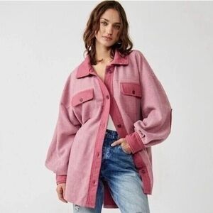 Free People Ruby Shacket Shirt Jacket Sweetheart Dusty Rose Pink