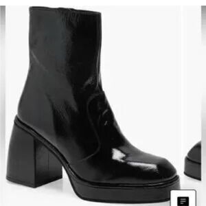A FP favorite, these so classic ankle boots are now featured in a shiny patent leather with a bold platform sole, side zip closures, and comfy cushioned footbed.