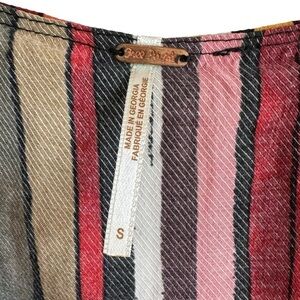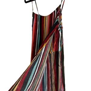 Super cute striped, lightweight tunic style top from Free People. This is a knee-length tank style tunic with slits up the sides and cropped length fabric across the bust underneath. Size Small and in great preowned condition; no visible flaws.