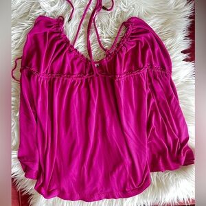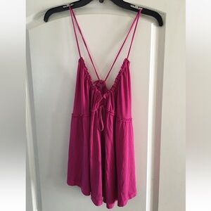 Free People top, halter cami, magenta tank, ruched blouse, boho summer top, soft knit tank, fairycore, coquette style, Y2K aesthetic, festival fashion, beachwear, hippie chic, soft girl look, layering piece