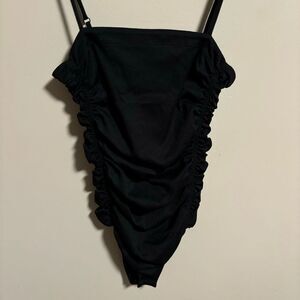 Free People Ruched Rib On Your Side Bodysuit Black- Size XS