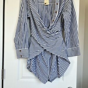 Free People Blue and white Pinstriped Romper. Never Worn. Condition New. Fits Size 6/8